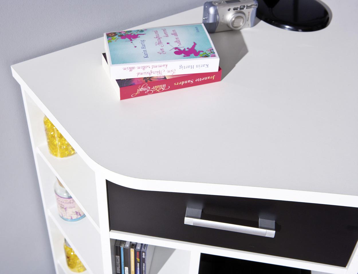 Ebay eckschreibtisch weiß mit schwarz dekor. Eckschreibtisch preise vergleichen und günstig kaufen bei idealo.de 202 produkte große auswahl an marken bewertungen & testberichte. Die schwarz folierte arbeitsplatte ruht auf einem weiß folierten regal und schräg gestellten, schwarz gebeizten beinen. Fmd eckschreibtisch »barrys«, eckschreibtisch mit umbauregal, weiß. Lex 1 schreibtisch winkelkombi von fmd weiß ab 134.90 aus der kategorie schreibtische sorgenfrei und auf rechnung ► jetzt bei.lex 1 schreibtisch winkelkombi von fmd schwarz.